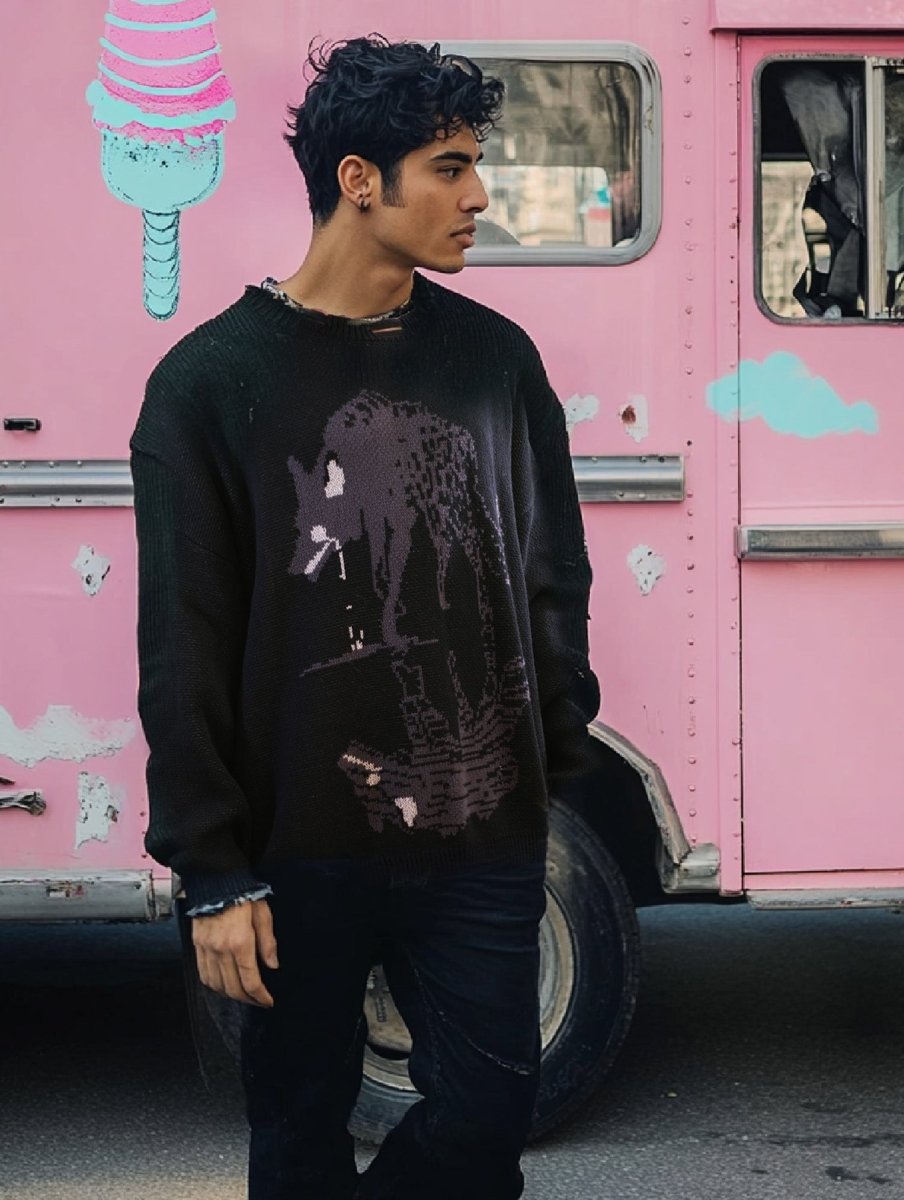 t’s not just a sweater; it’s a reminder. Like the wolf, sometimes we do things against our true nature. We make choices that leave marks, not just on us but on everything we touch. For the ones who feel torn between who they are and who the world makes them be—this is your story, in threads and tears