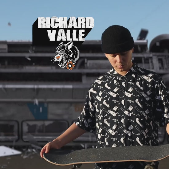 This stylish button up is perfect for those who have been skating for years and have the scars to show for it. The illustrated pattern captures the essence of skating, with all its hazards and challenges.