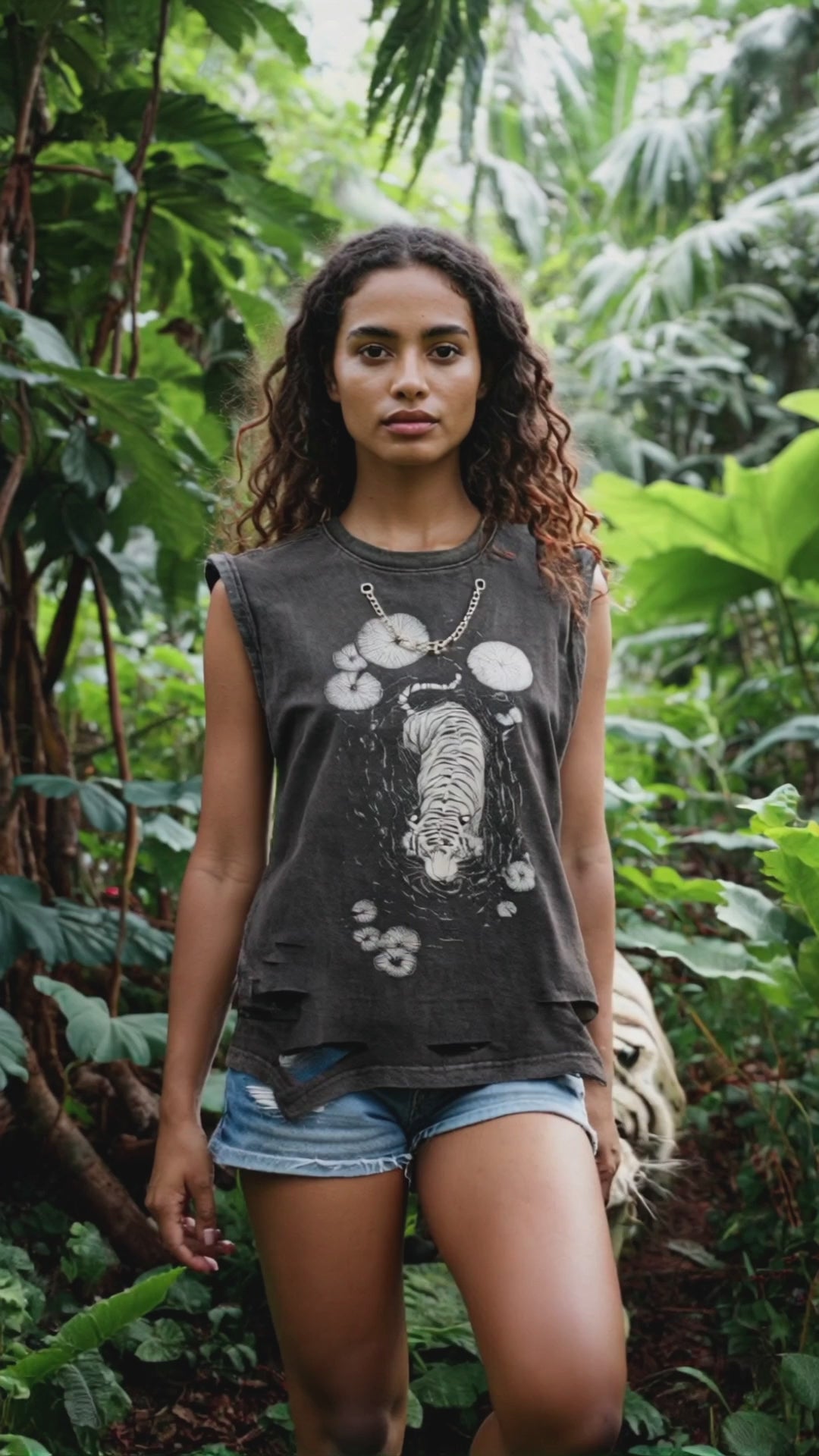 A top-down glimpse into the wildโthis design captures a tiger in its element, moving through a still stream surrounded by floating lilies. The fine linework and subtle shading create a hauntingly serene yet powerful aesthetic, embodying quiet strength and raw nature.